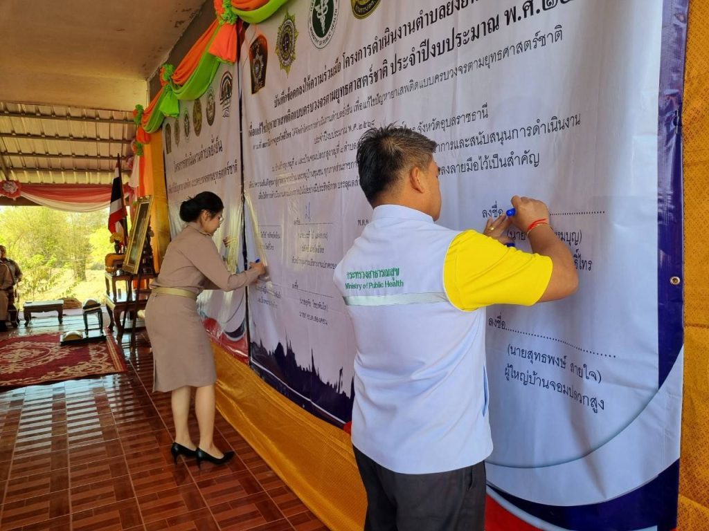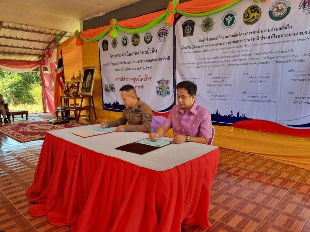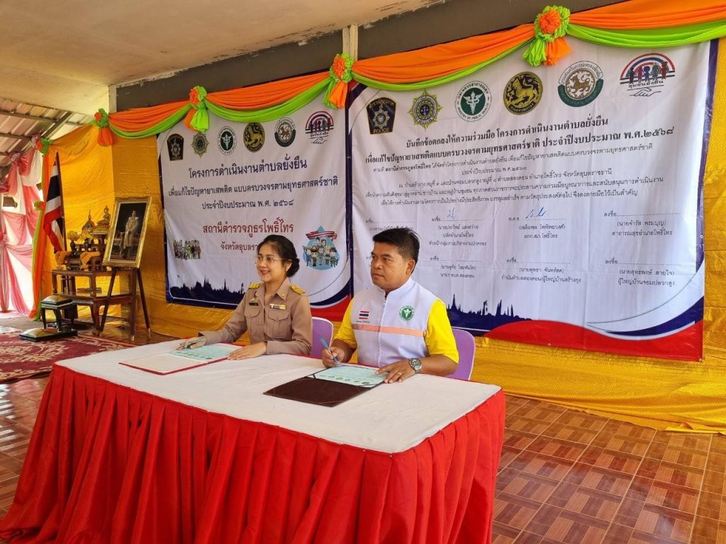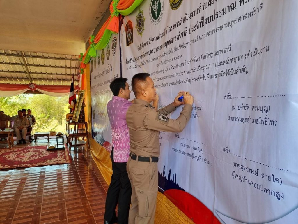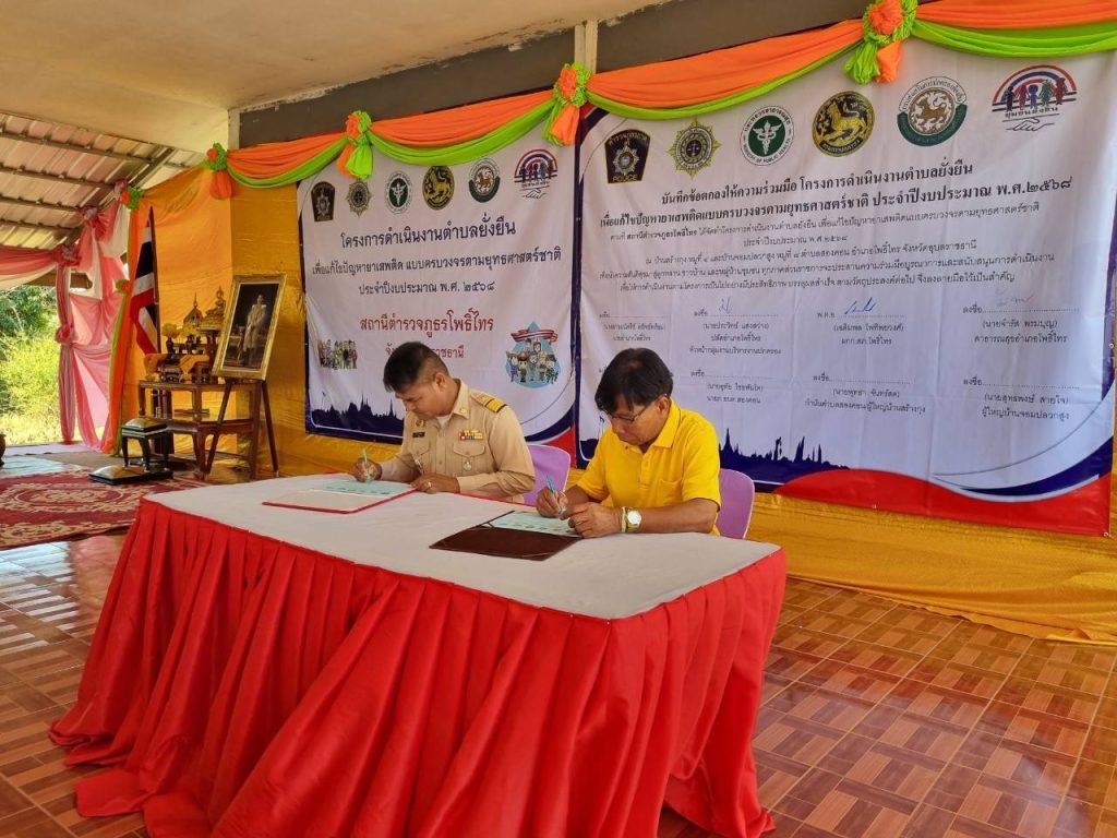วันนี้ (10มี.ค.68) เวลา 09.00 น. พ.ต.อ.เฉลิมพล โพทิพยวงศ์ ผกก.สภ.โพธิ์ไทร พร้อมด้วยเจ้าหน้าที่ชุดปฏิบัติการตำบลยั่งยืน หัวหน้าส่วนราชการ สาธารณสุข โรงพยาบาลโพธิ์ไทร ประธานและคณะกรรมการ กต.ตร.สภ.โพธิ์ไทร ภาคีเครือข่าย ผู้นำชุมชน ผู้นำท้องถิ่น และประชาชนชาวตำบลสองคอน อำเภอโพธิ์ไทร ร่วมพิธีเปิดโครงการดำเนินงานตำบลยั่งยืนเพื่อแก้ไขปัญหายาเสพติดแบบครบวงจรตามยุทธศาสตร์ชาติ สภ.โพธิ์ไทร ประจำปีงบประมาณ 2568 โดยมี นายประวิทย์ แสงสว่าง ปลัดอำเภอโพธิ์ไทร หัวหน้ากลุ่มงานบริหารงานปกครอง ผู้แทนนายอำเภอโพธิ์ไทร เป็นประธานในพิธี ณ ศาลาประชาคมบ้านสร้างกุง หมู่ที่ 4 ตำบลสองคอน อำเภอโพธิ์ไทร จังหวัดอุบลราชธานี