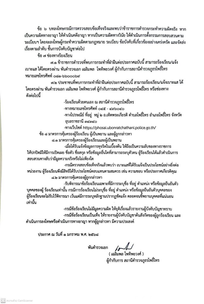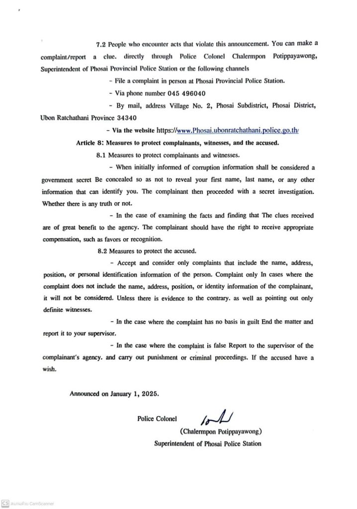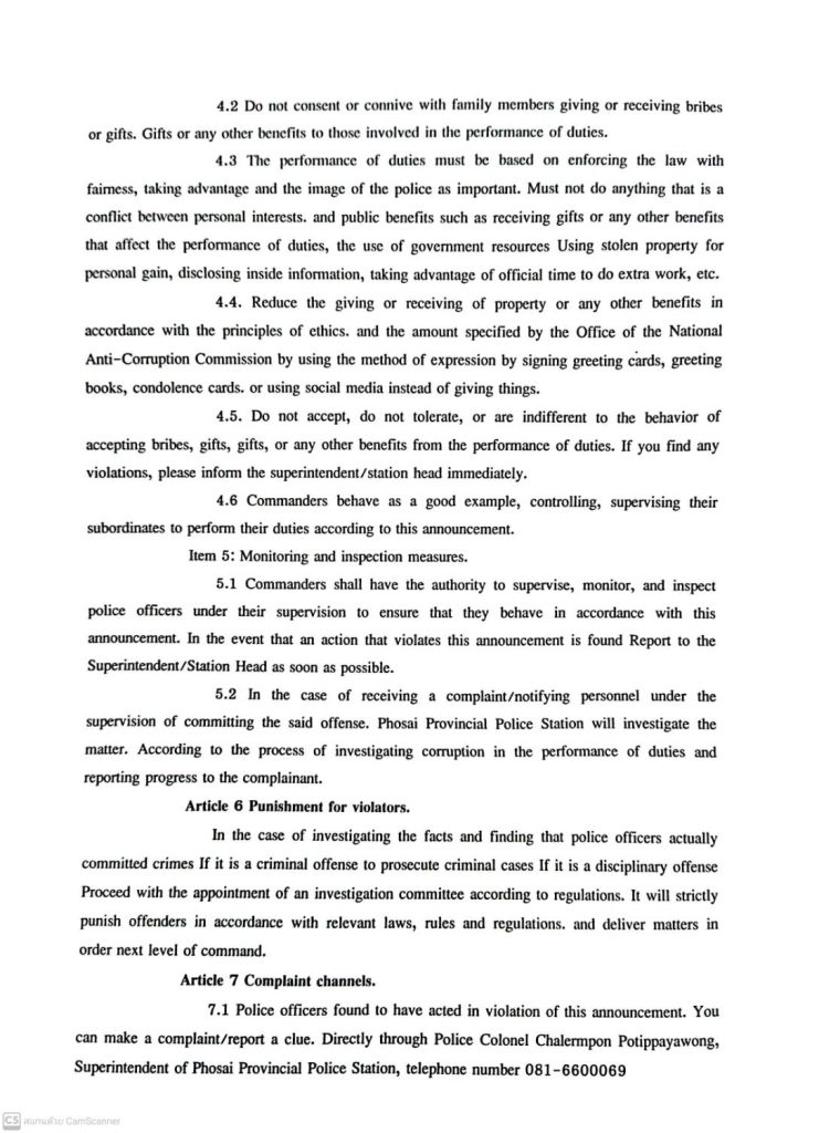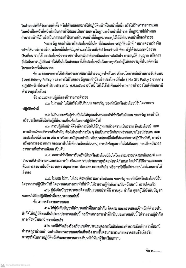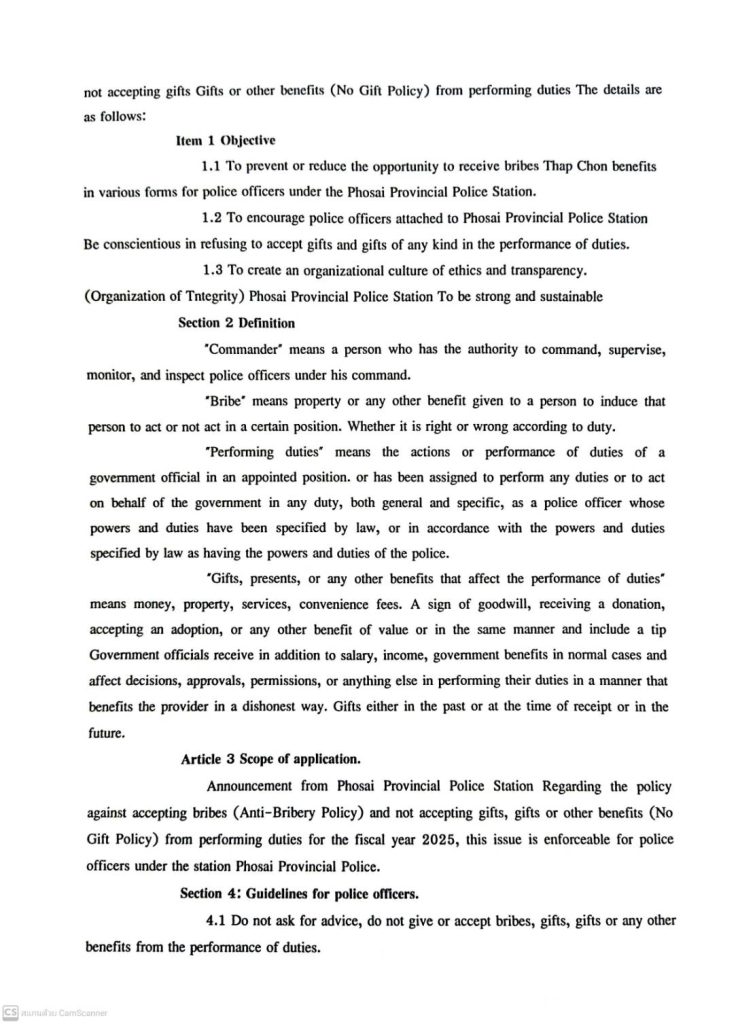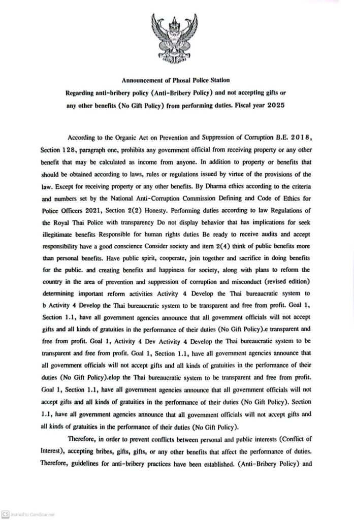 เผยแพร่นโยบาย ไม่รับของขวัญและของกำนัลทุกชนิด (No Gift Policy) จากการปฏิบัติหน้าที่บริเวณจุดประชาสัมพันธ์ สภ.โพธิ์ไทร
