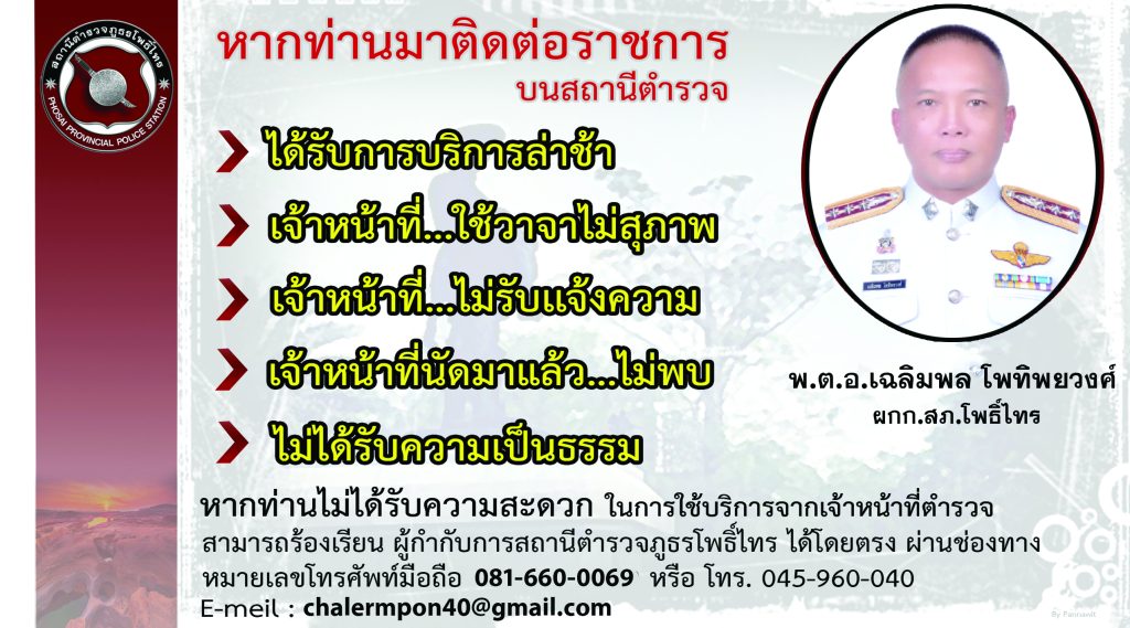 ช่องทาง เพจเฟซบุ๊ค ” สถานีตำรวจภูธhttps://www.facebook.com/Phosaipolicestationรโพธิ์ไทร จังหวัดอุบลราชธานี”